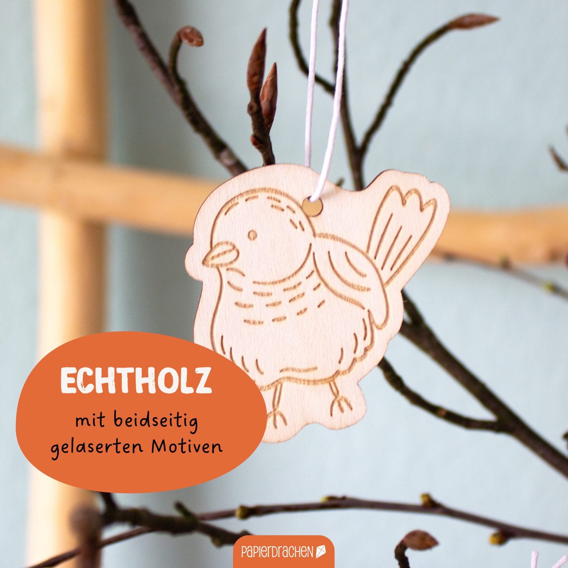 - 12 Anhänger aus Echtholz inkl. Band zum Bemalen – zum Aufhängen und Dekorieren -7x7cm groß