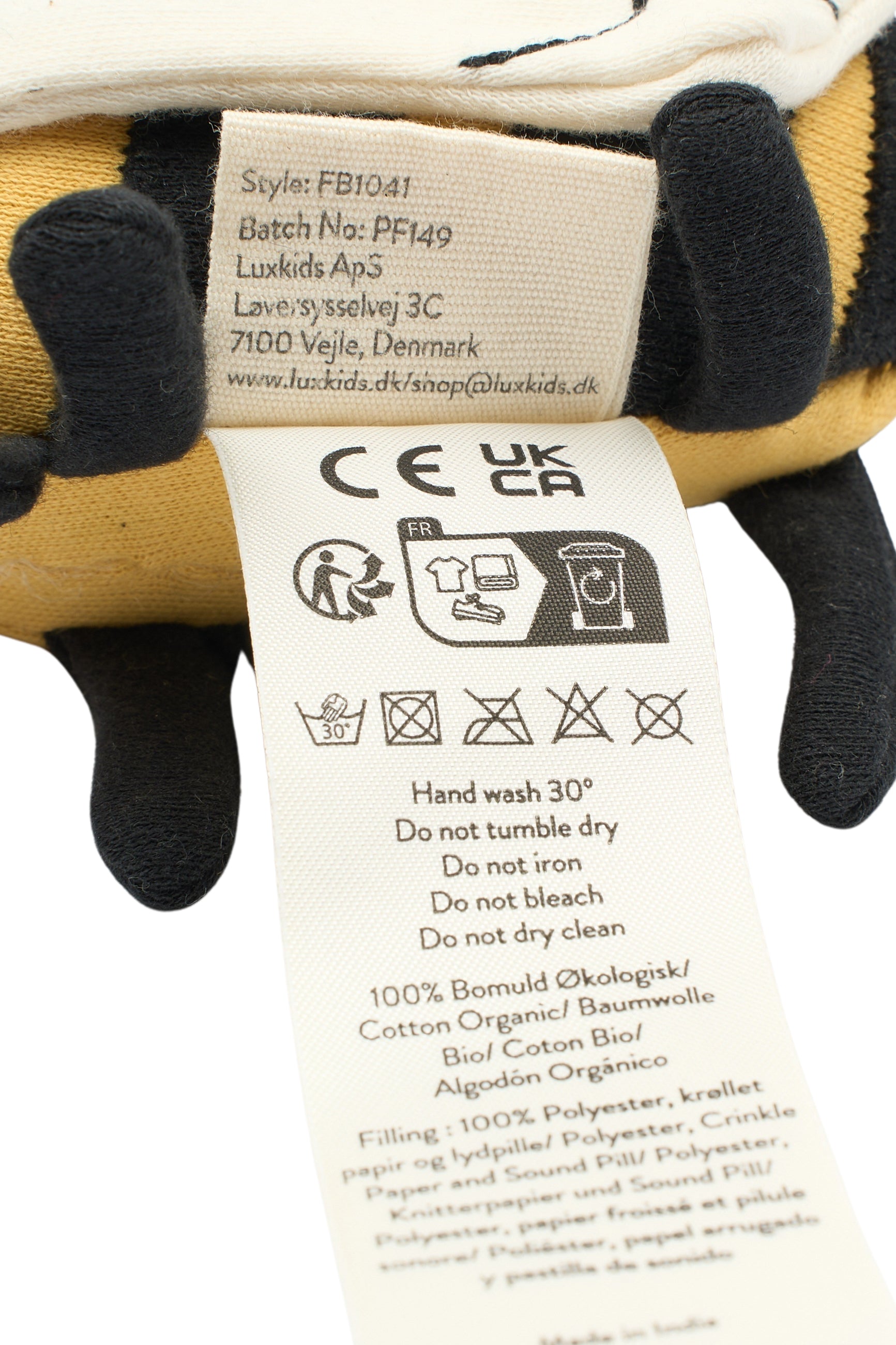 Füllung: 100% recyceltes Polyester und Knisterpapier
