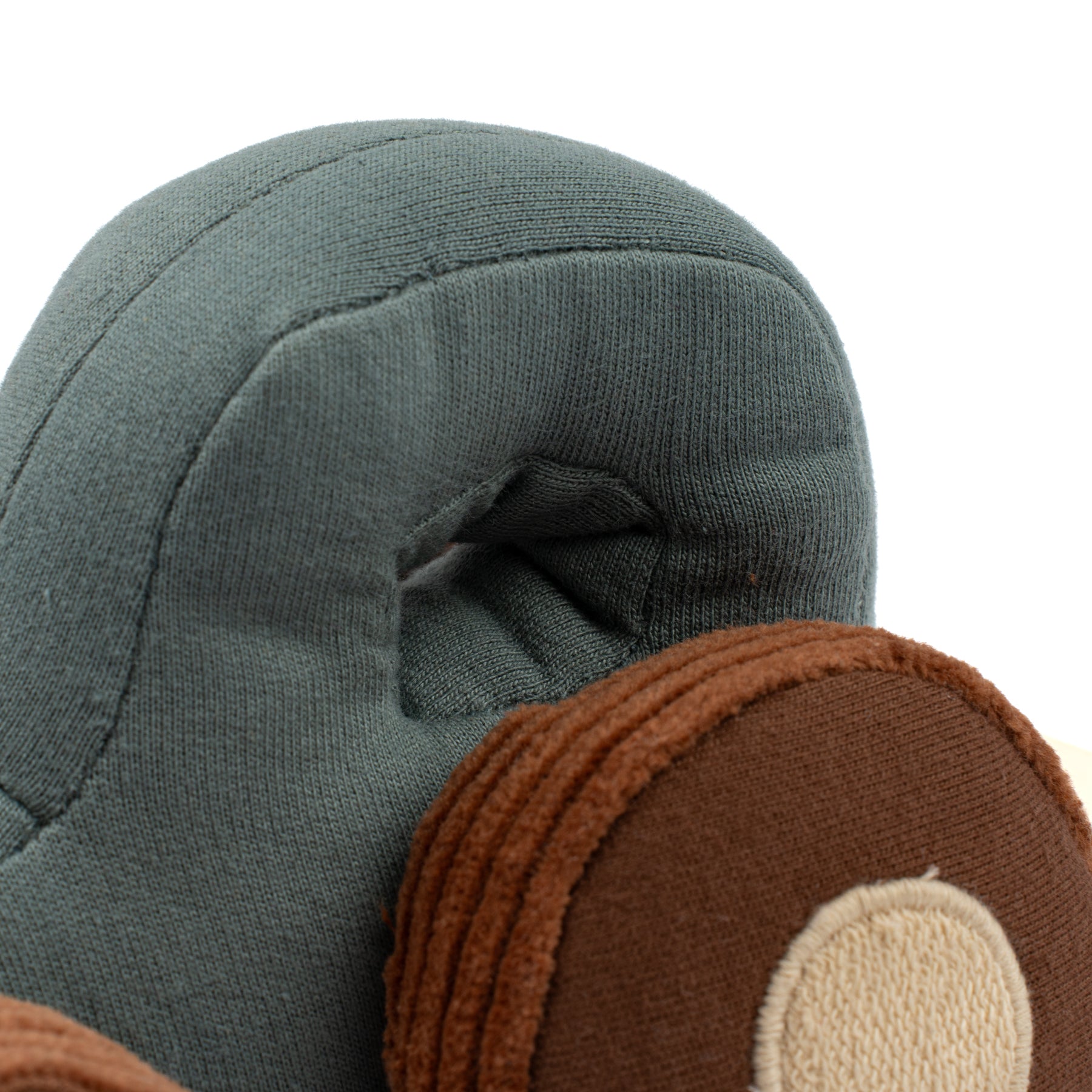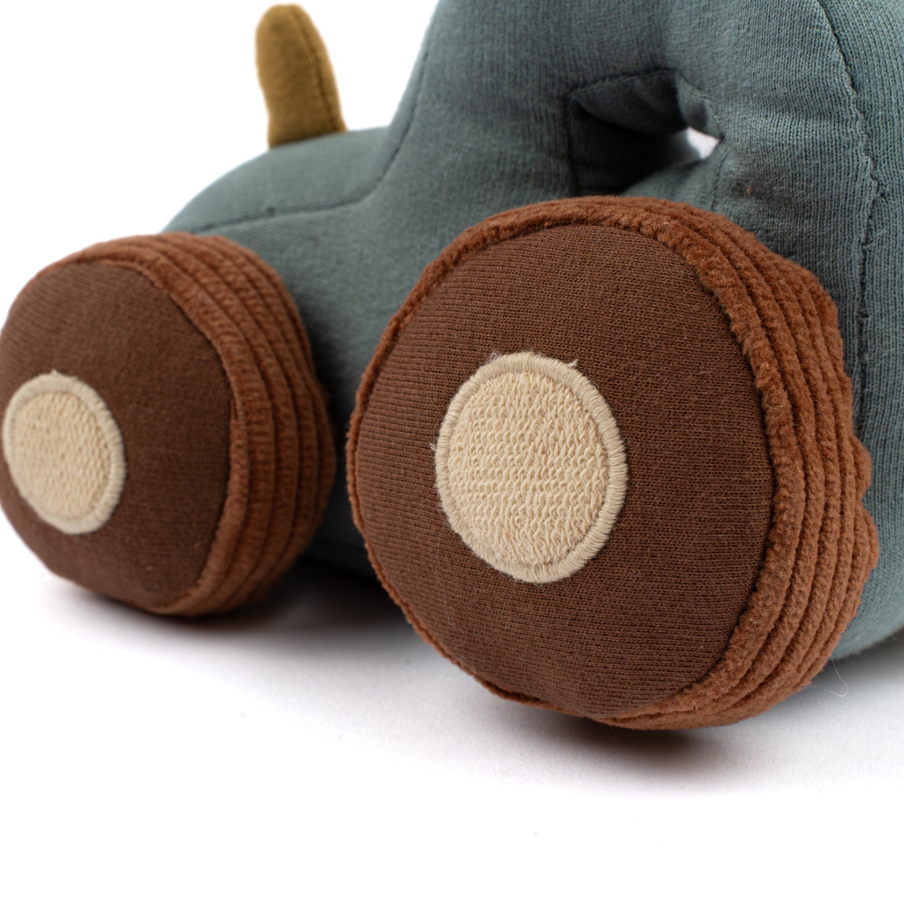 Diese Traktor-Rassel ist für kleine Hände leicht zu halten und zu greifen. Der Bio-Baumwollstoff fühlt sich weich und angenehm an, sodass Ihr Baby beim Greifen und Schütteln der Rassel verschiedene Sinneseindrücke sammeln kann. Das leise Rasseln der inneren Rasselkomponente stimuliert das Gehör und fördert die sensorische Entwicklung Ihres Babys. Beflügeln Sie die Fantasie Ihres Kindes und fördern Sie seine Entwicklung, während Sie gleichzeitig sicher sein können, dass Sie eine umweltbewusste Wahl für seine Spielzeugsammlung getroffen haben.