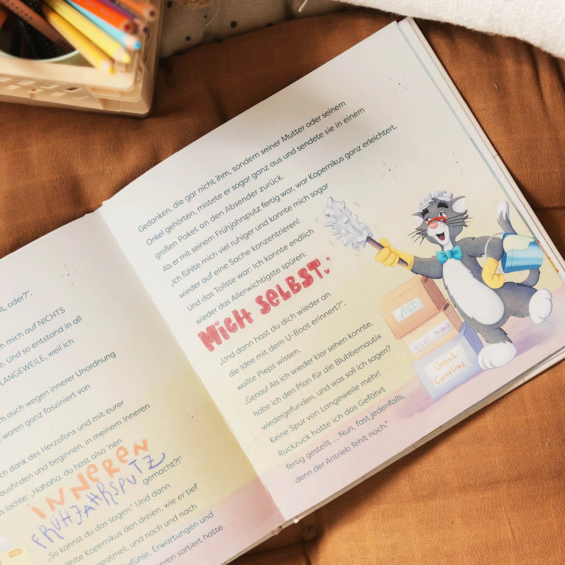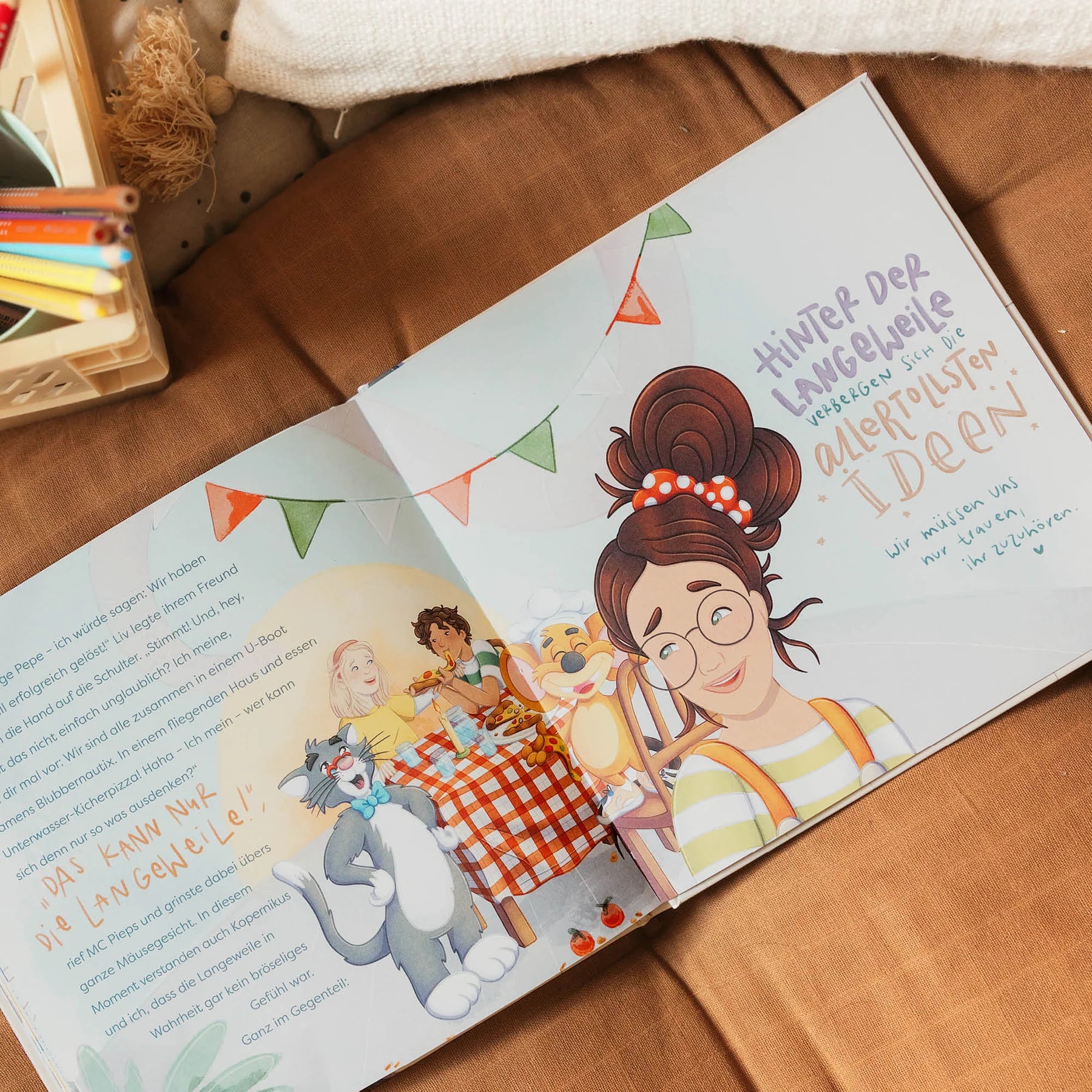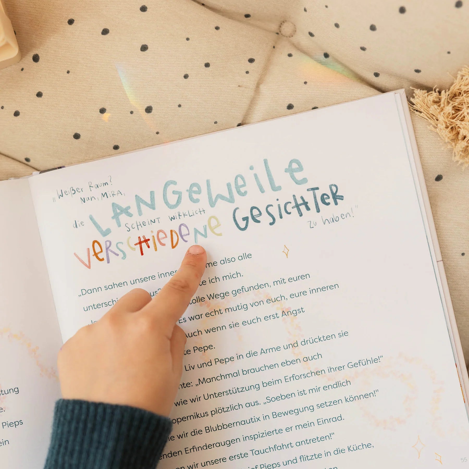 Innere Unruhe, Unsicherheit – oder sogar die Schwierigkeit, mit sich selbst allein zu sein. Das kann Kinder überfordern oder sogar beängstigend sein. Das Buch zeigt: Alle Gefühle sind okay – auch die Langeweile. Sie darf da sein. Und sie kann sogar der Anfang von etwas Großem sein.