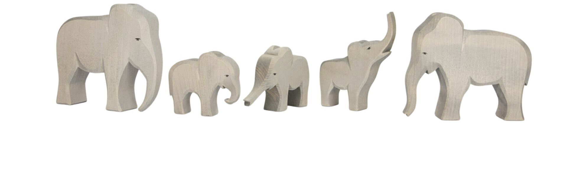Holztier "Elefant". Holzfiguren, die Tiere aus fernen Ländern darstellen, inspirieren Kinder zu einem fantasievollen, freien Spielen.