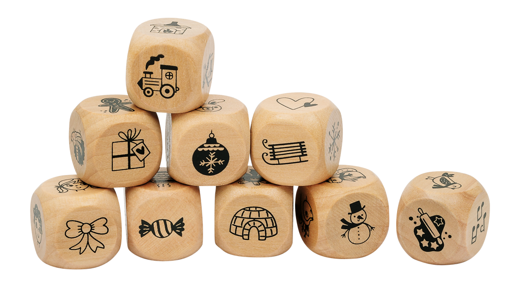 Das Set enthält 9 große Holzwürfel mit winterlichen Symbolen, die allein oder gemeinsam genutzt werden können. Verpackt in einer dekorativen Box mit Goldfolien-Veredelung sind die Würfel eine stimmungsvolle Beschäftigungsidee für die Winter- und Weihnachtszeit.