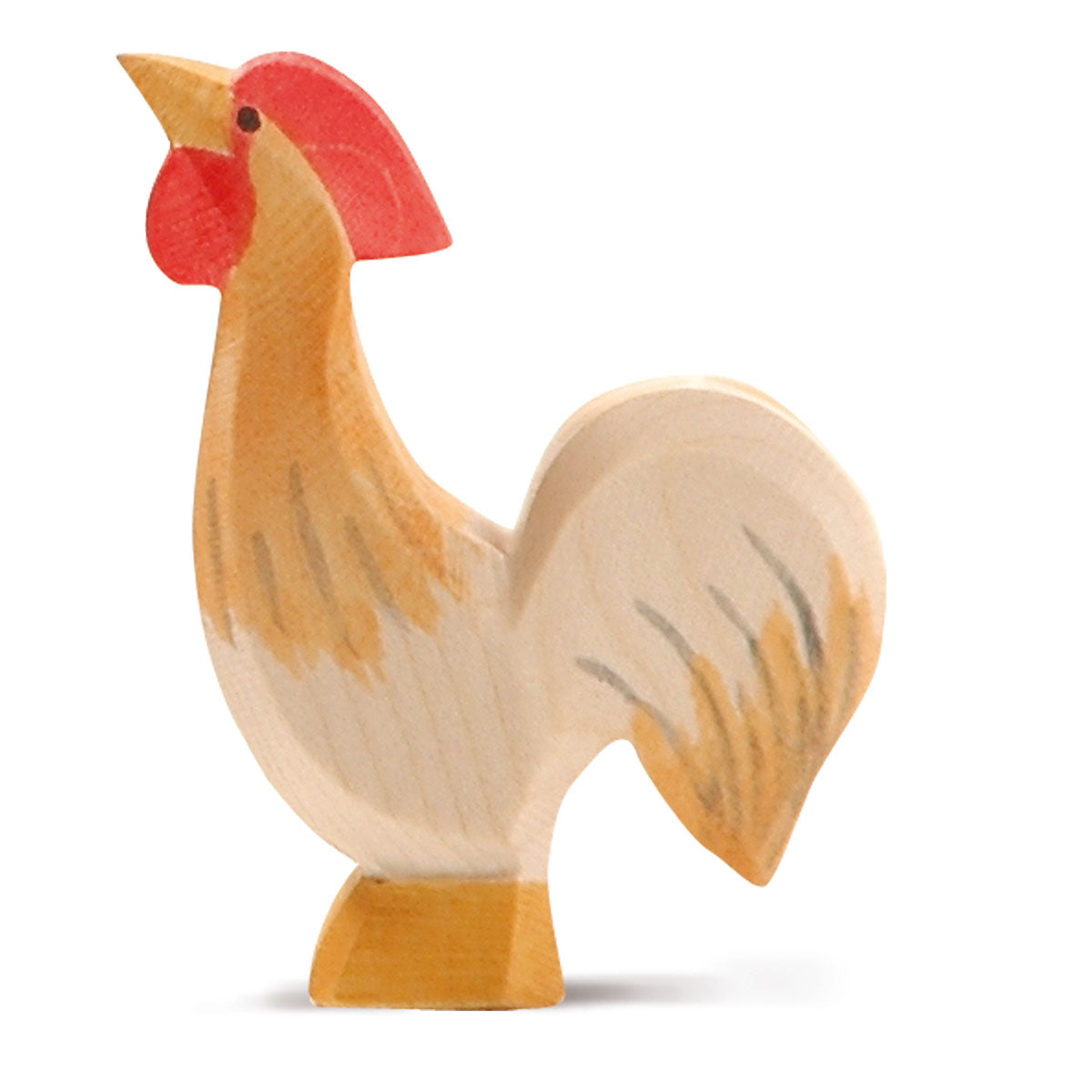 Holztier "Hahn ocker" aus der Ostheimer Bauernhof-Familie. Gutes Holzspielzeug, das im Spiel der Kinder sanft die Sinne und Fantasiekräfte fördert.