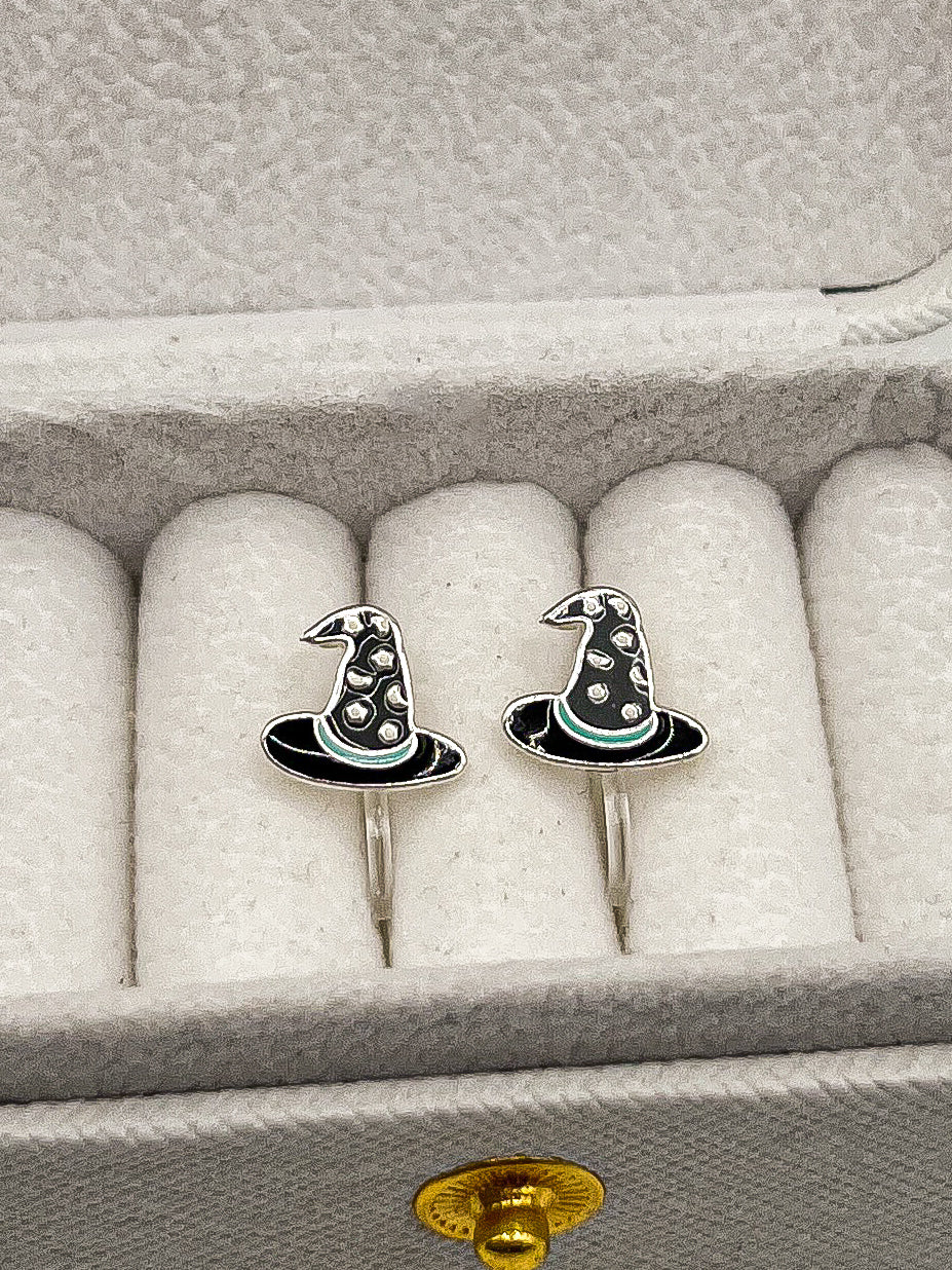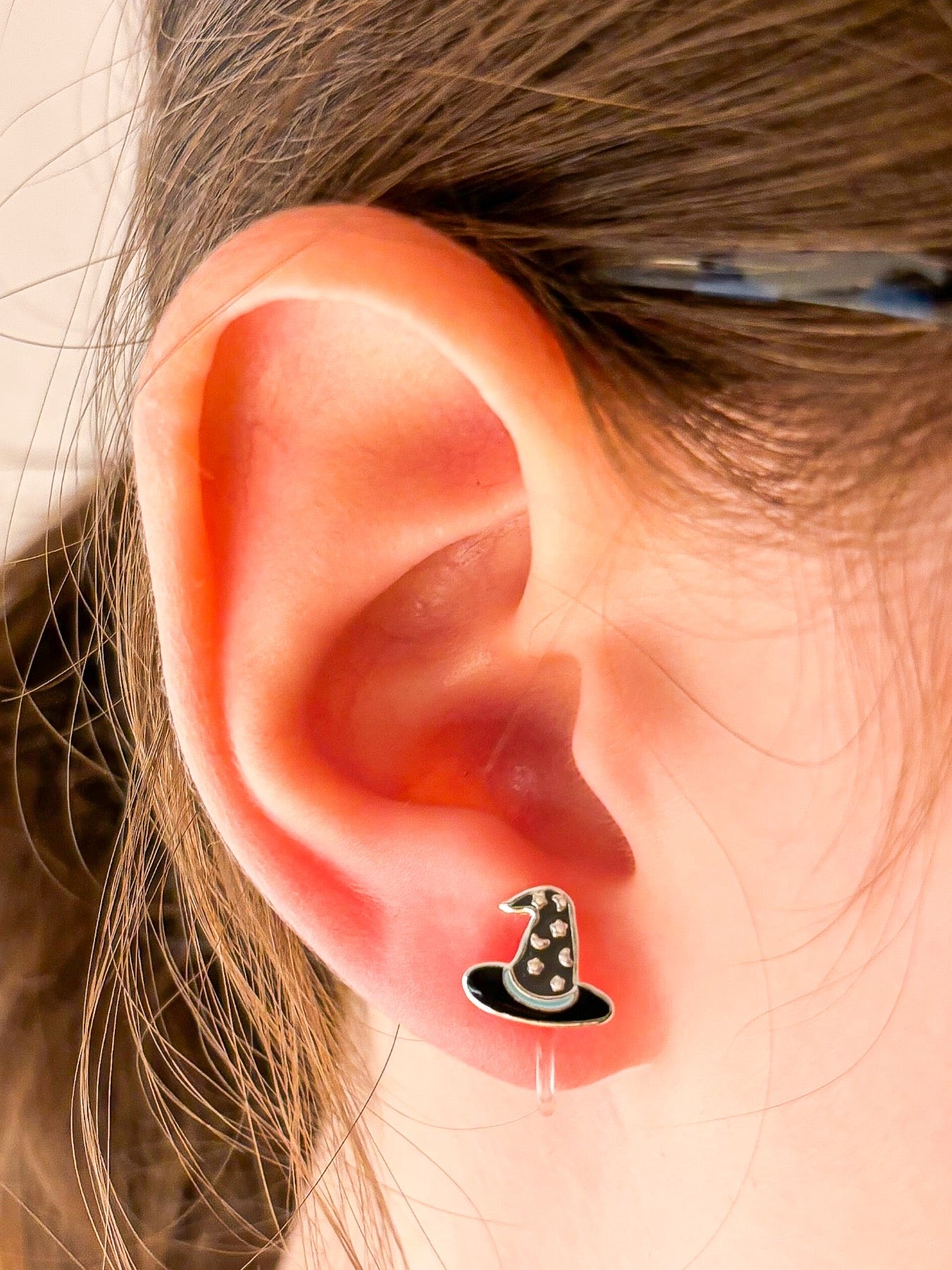Süße Hexenhut Ohrclips aus Echtsilber für Kinder, lassen sich jedem Ohrläppchen individuell anpassen & sehen aus wie richtige Ohrstecker.