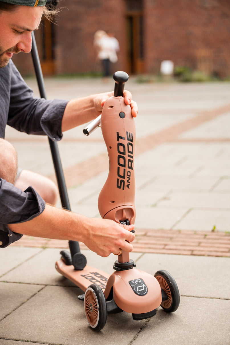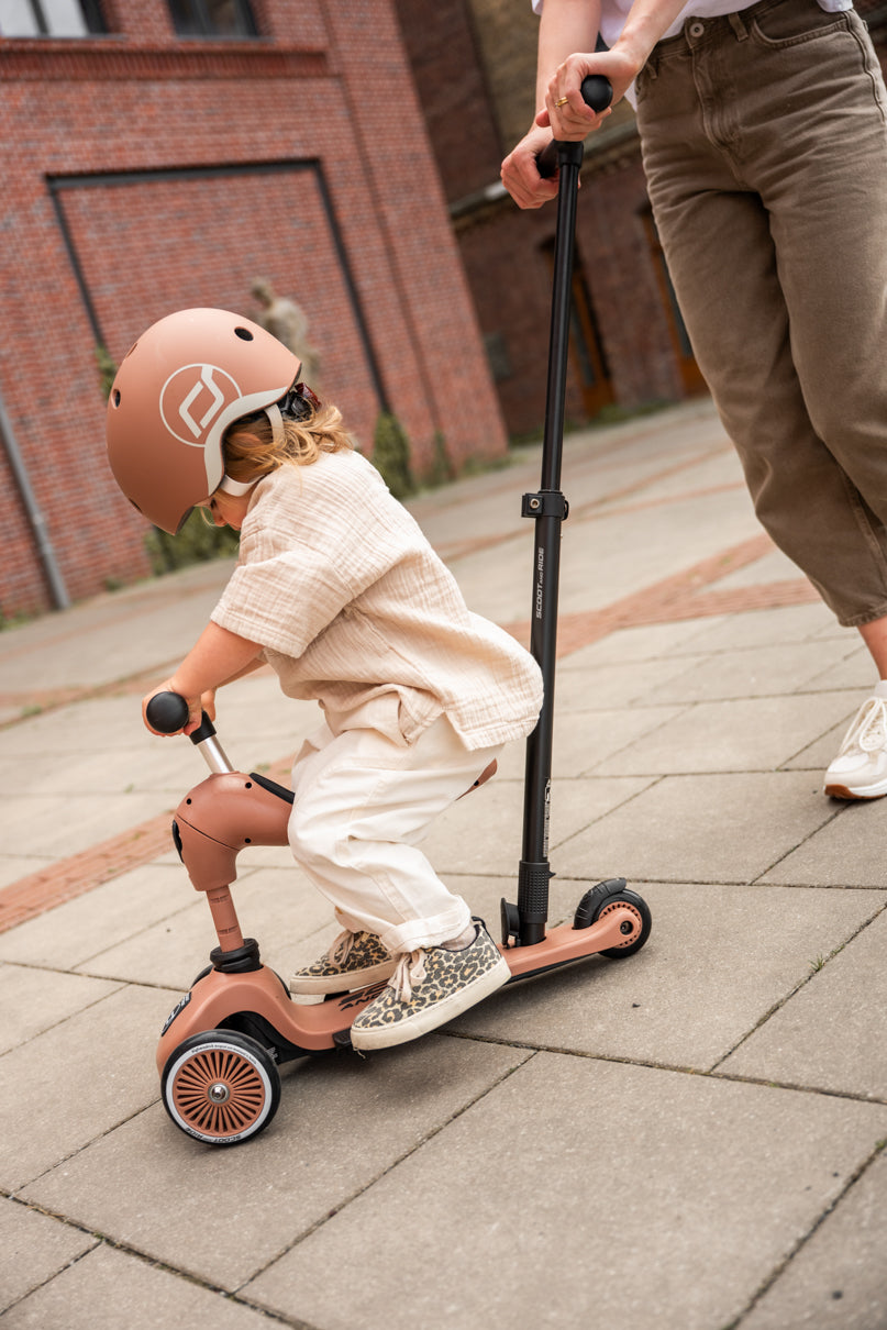 Der Highwaykick 1 Push and Go vereint alle Vorteile, des Highwaykick 1, mit einem neuen, wichtigen Feature, der Eltern-Schiebestange. Nun ist es möglich die Kinder im Alter zwischen ein und drei Jahren bequem, sowohl sitzend als auch stehend, am Roller zu schieben. Die praktische Schiebestange lässt sich ganz ohne Werkzeug am Trittbrett des Rollers anbringen und kann 3-fach in der Höhe verstellt werden. Zusätzlich lassen sich Fußrasten am Trittbrett anbringen, so können die Kinder ihre Füße komfortabel abstellen, während sie geschoben werden. Alle Grundfunktionen des Highwaykick 1 wie die 2in1 Funktion, oder der höhenverstellbare Sitz bleiben beim Push and Go erhalten. So wächst auch dieses Modell weiterhin mit deinem Kind mit.
