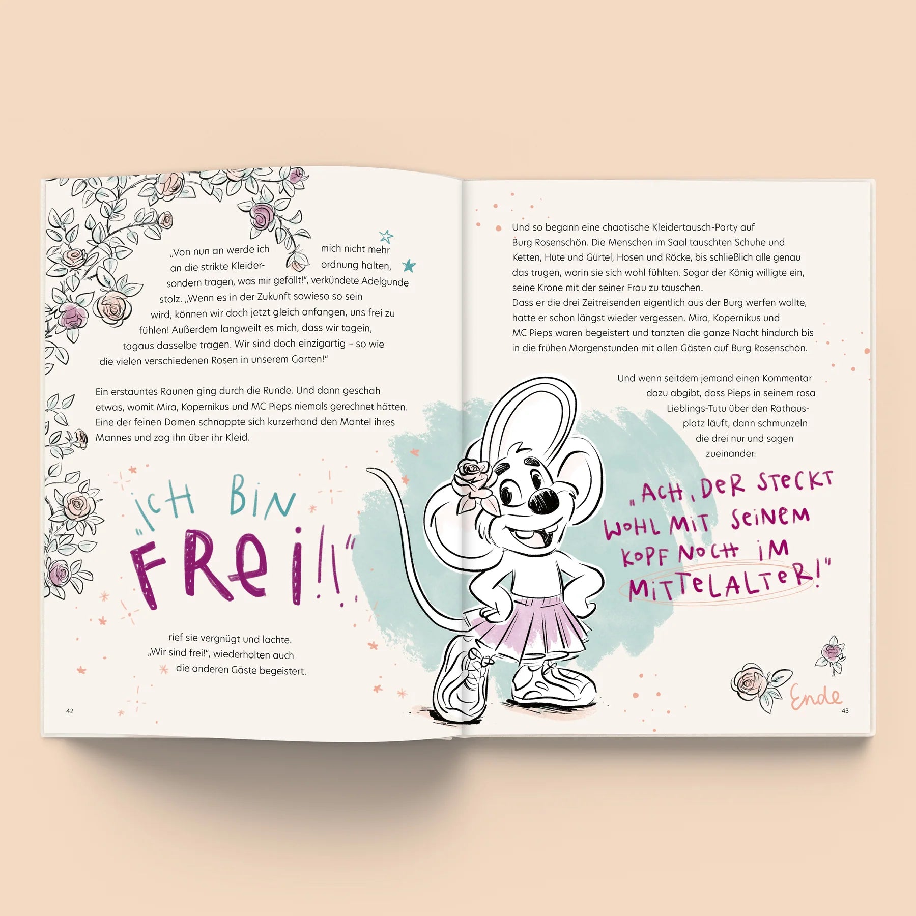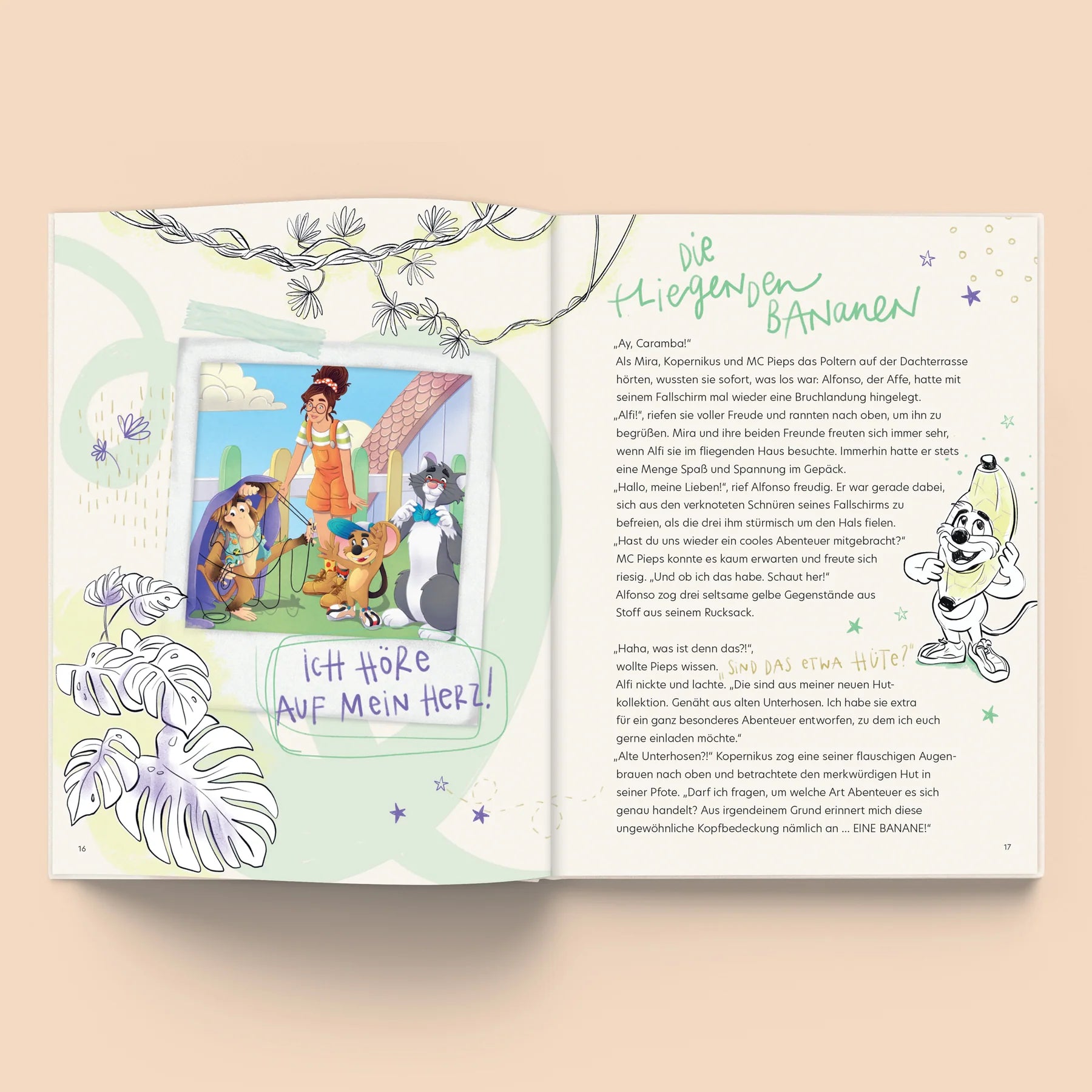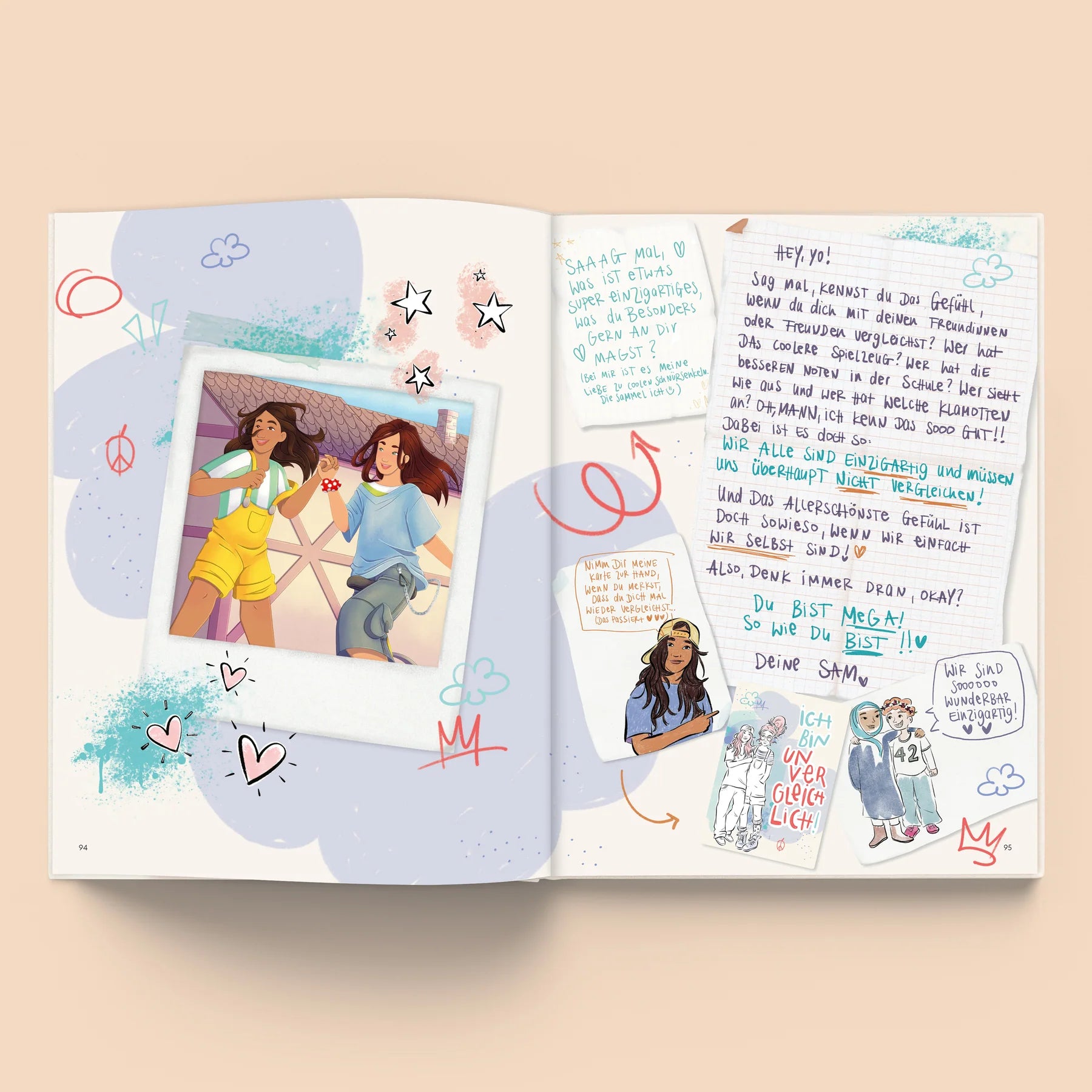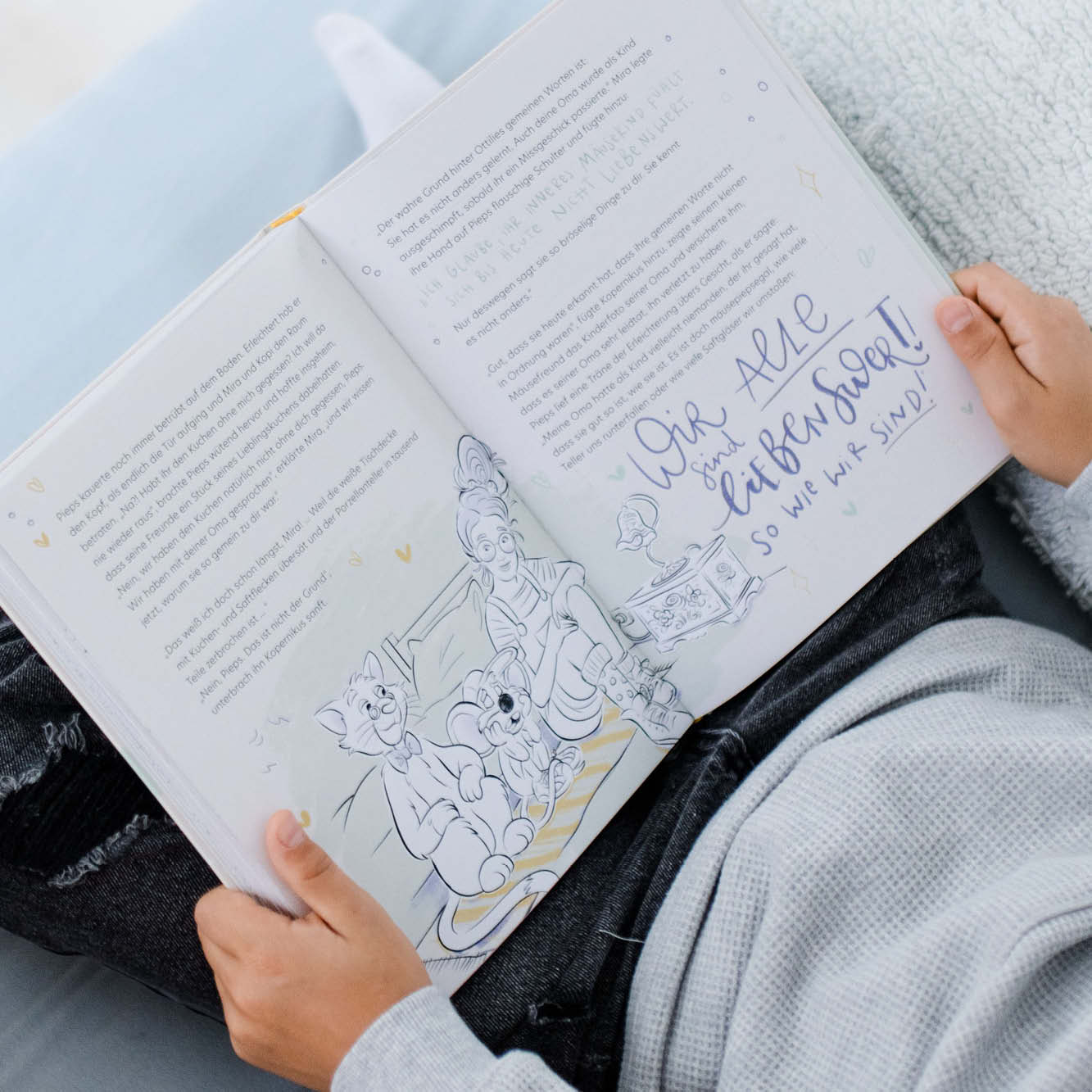 Dein Kind bekommt nach jeder Geschichte einen Brief von MiRA, Kopernikus, MC Pieps oder ihren Freunden. So wird es persönlich angesprochen und bekommt außerdem Ideen, wie es den Kraftsatz aus der Geschichte ins eigene Leben übertragen kann. Als zusätzliches Geschenk gibt es 16 heraustrennbare Kinder-Kraft-Karten und wunderschön illustrierte Sonderseiten, welche die Vielfalt des Themas sichtbar machen und auf denen dein Kind eine Menge entdecken kann. Der perfekte Türöffner für super wertvolle Herzensgespräche in der Familie!