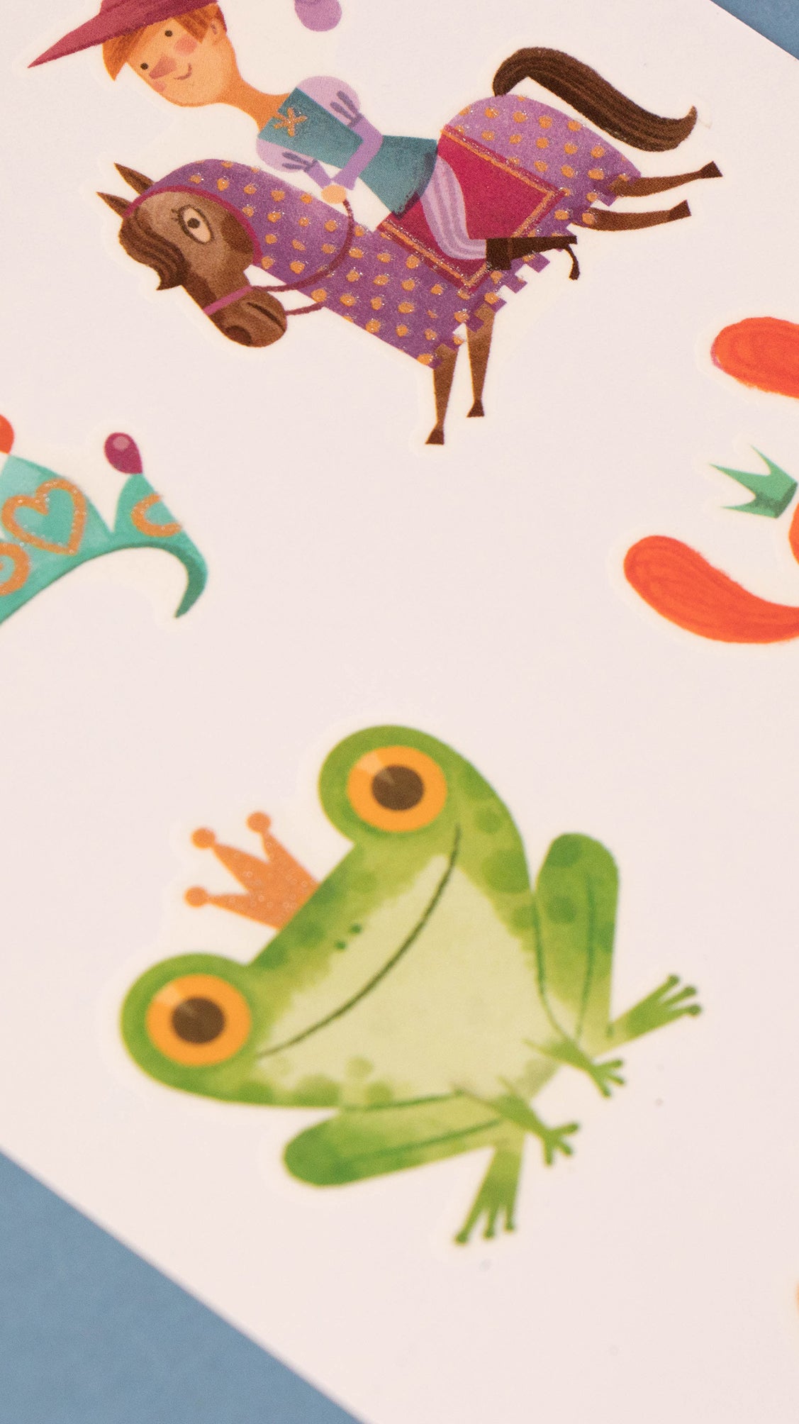 Ihre Majestäten vom Königreich Londji freuen sich, Ihnen die fantastischen Prinzessinnen-Tattoos präsentieren zu dürfen! Zehn hochwertige temporäre Tattoos mit Prinzen und Prinzessinnen, die auf dem Körper zur Schau gestellt werden können. Sie sind sicher, machen Spaß, sind ungiftig und werden in Europa hergestellt!