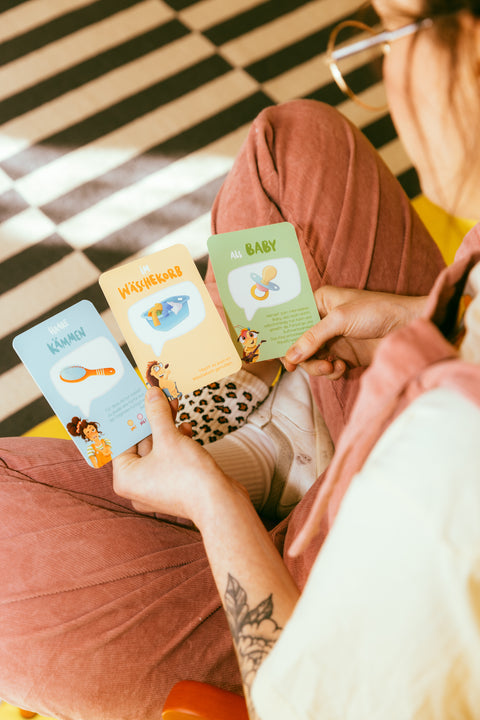 Raus aus dem Machtkampf - rein in die Party. Und Ja - ALLES kann eine Party sein: Auch Zähneputzen, Anziehen und Haare Waschen! Das MIRA-Kartenspiel hilft Kindern dabei zu kooperieren und Erwachsenen dabei, ihre inneren Kinder wiederzufinden. Für mehr Verbindung, Leichtigkeit und Freude in eurer Familie.