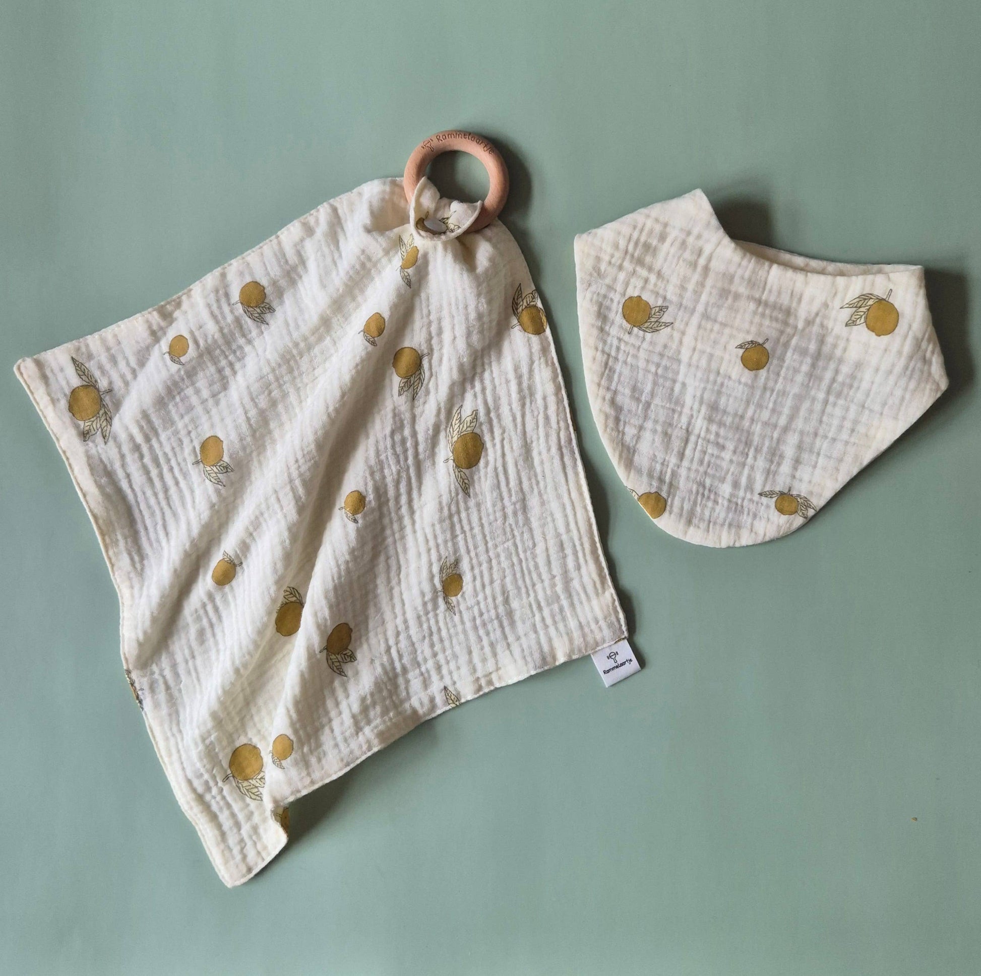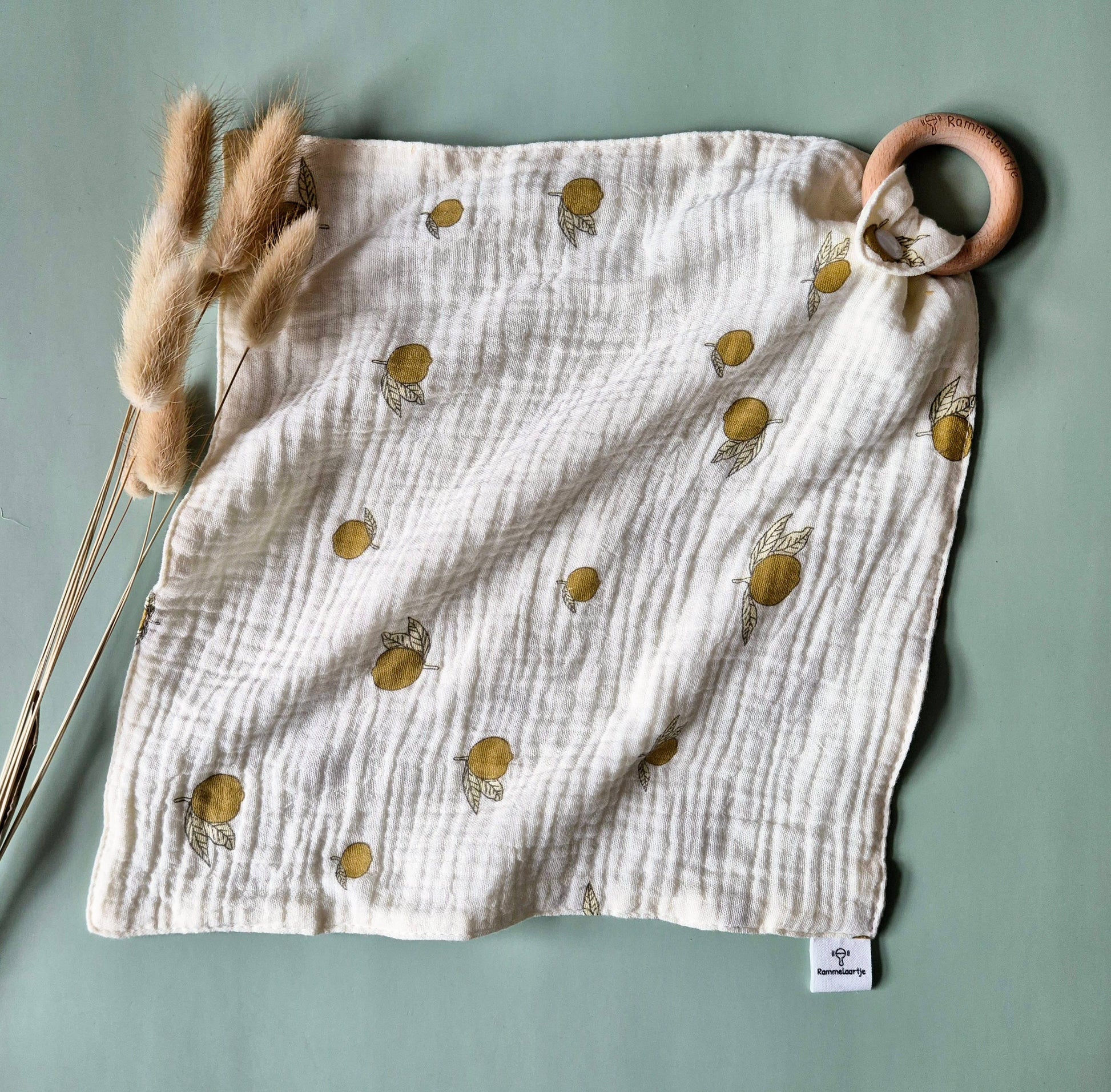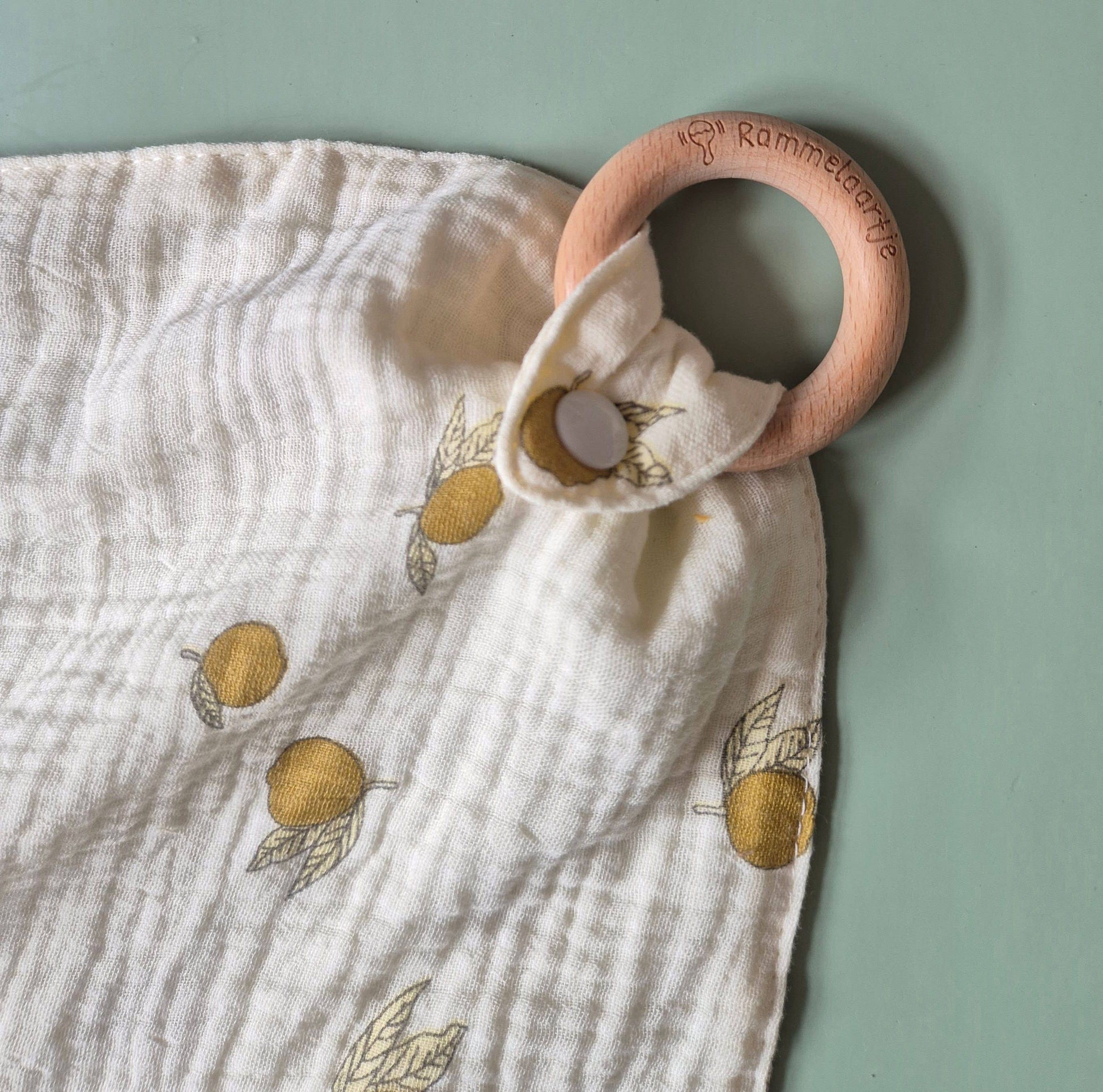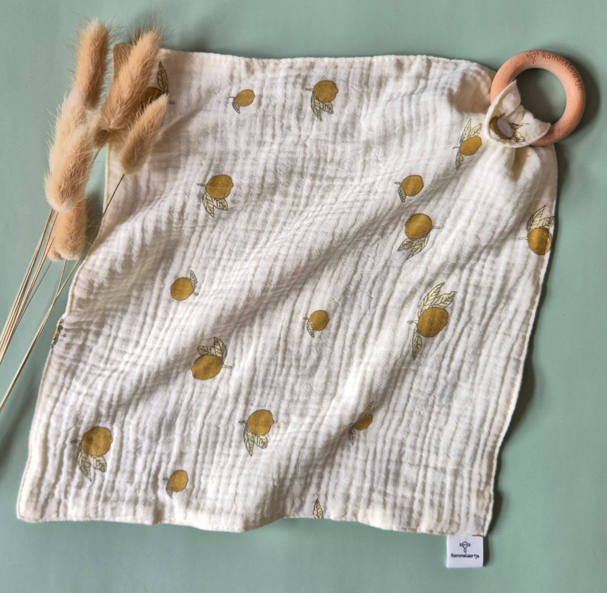 Schmusetuch mit Beißring aus Buchenholz - Zitronen