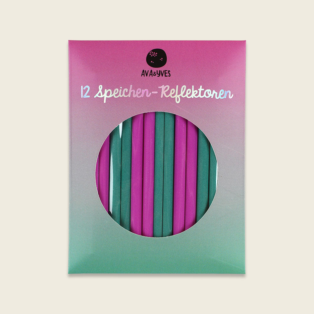 ava&yves Speichenreflektoren – Sichtbar mit Stil! Mach dein Fahrrad sicher und schick zugleich! Die Speichenreflektoren sorgen für maximale Sichtbarkeit bei Dämmerung und Dunkelheit – ganz ohne Werkzeug montiert. Hergestellt aus robuster, wetterfester Reflexfolie im liebevoll-verspielten ava&yves Design. Ideal für Kinder- und Erwachsenenräder.